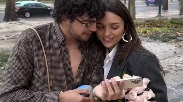 Em outra cena compartilhada, os dois já surgem abraçados, com Rafa assistindo ao vídeo romântico no celular do cantor enquanto segura o buquê de rosas. "Hoje fui postar como foi lindo. E ainda teve vídeo da @anavitoria cantando a 'nossa música'", contou emocionada a influenciadora, mostrando o carinho entre o casal.