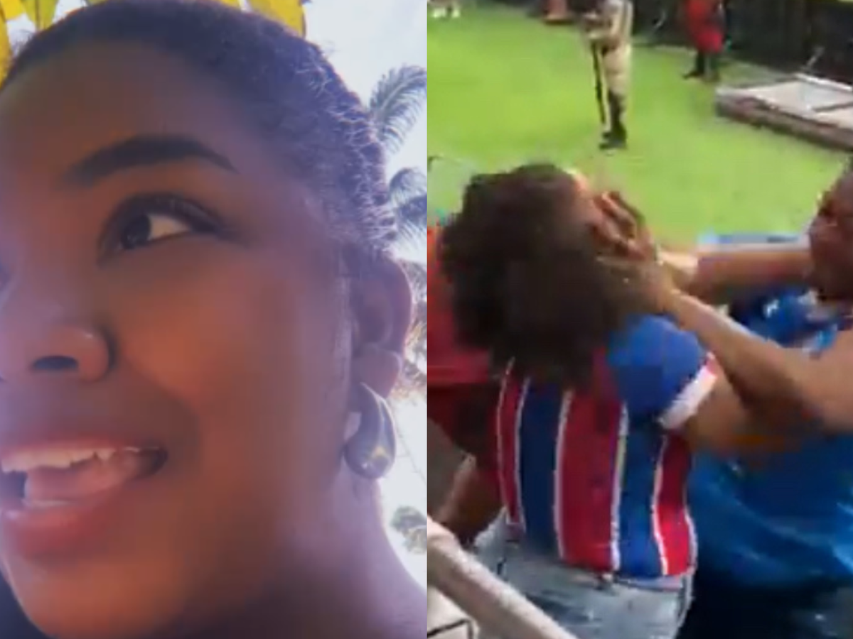 O vídeo viralizou nas redes sociais neste domingo (08). A confusão começa com duas torcedoras, que trocam farpas no meio da partida. A briga evolui, uma puxa o cabelo da outra e mais duas pessoas, um homem e uma mulher, se envolvem em uma pancadaria. O torcedor, cuja identidade ainda não foi revelada publicamente, chega a trocar socos com duas das mulheres.
