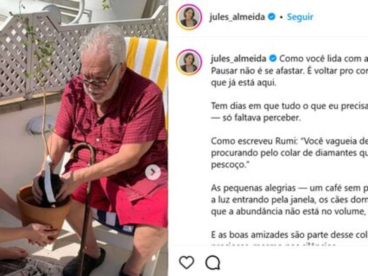 Na legenda da publicação mais recente, Júlia compartilhou uma reflexão sobre pausas, simplicidade e criação com propósito. Sem mencionar diretamente o estado de saúde do pai, ela escreveu: "Pausar não é se afastar. É voltar pro corpo, pro que é simples, pro que já está aqui".