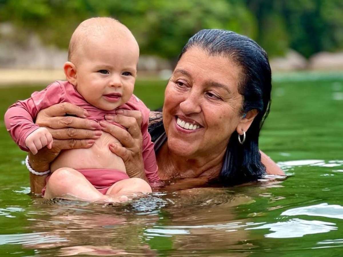 A atriz e apresentadora publicou fotos com a sobrinha-neta no mar e agradeceu aos pais da bebê