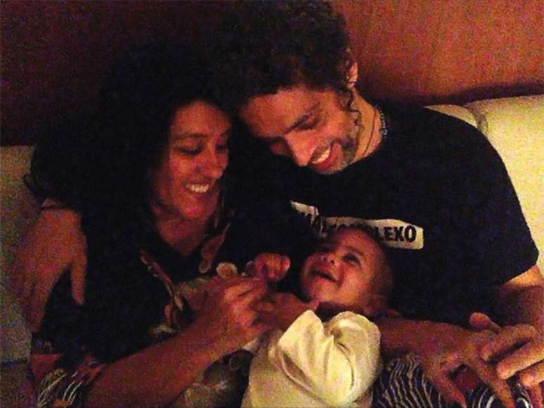 Regina Casé postou uma foto em seu Twitter neste domingo (22) ao lado de seu marido, Estevão Ciavatta, e o novo membro da família, Roque, de cinco meses, adotado em novembro pelo casal.
