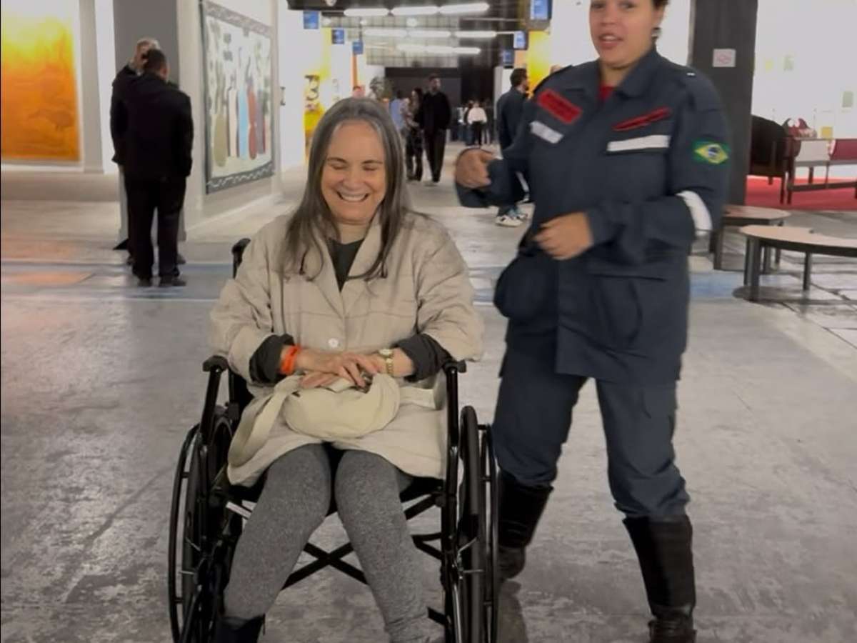 Regina Duarte esclareceu que o uso de cadeira de rodas na mostra SP-Arte foi devido a uma bolha no pé, tranquilizando os fãs sobre sua saúde.