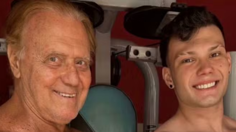 David Cardoso, que fez muito sucesso no cinema brasileiro na década de 1970, compartilhou uma foto mostrando os músculos do braço ao lado do filho, que é estudante de nutrição, personal trainer e se dedica ao fisiculturismo.