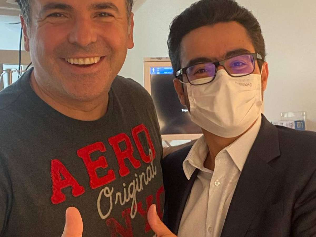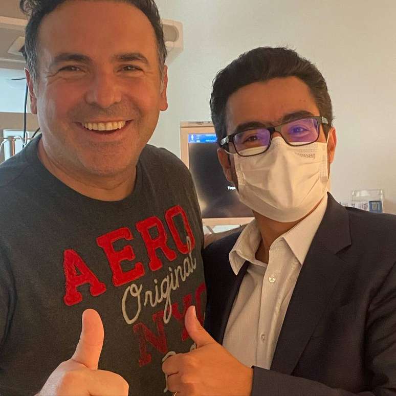 No Instagram, o comunicador publicou uma selfie com seu médico e, na legenda, ele explicou que deve voltar em breve ao hospital: "Boas notícias. Liberado aqui pelo médico Leandro Echenique. Deu tudo certo. Exames feitos, procedimentos realizados e vamos voltar em breve".