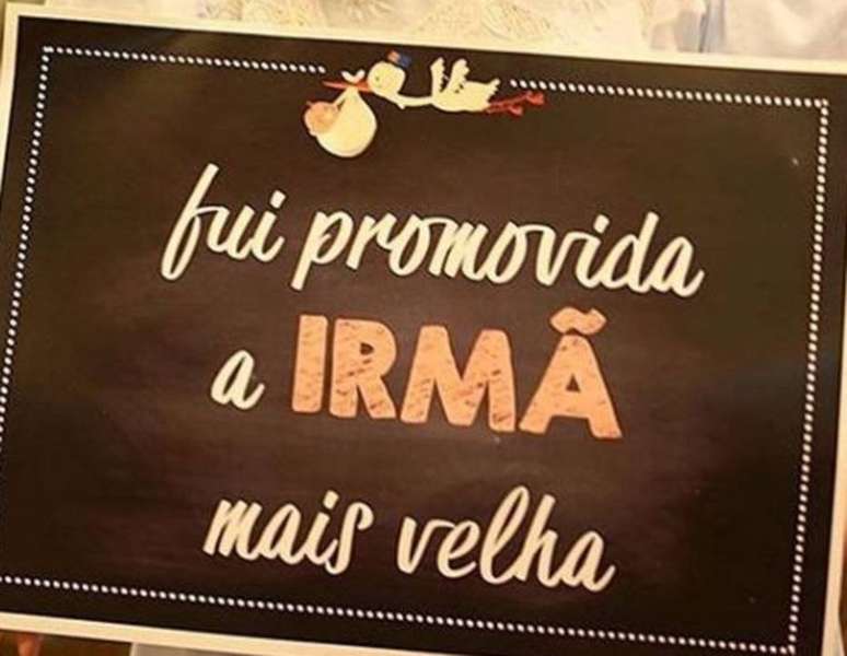 De repente, a pequena Nina aparece com um vestido azul e diversos balões das mesmas cores, mostrando que será a irmã mais velha de um menininho.