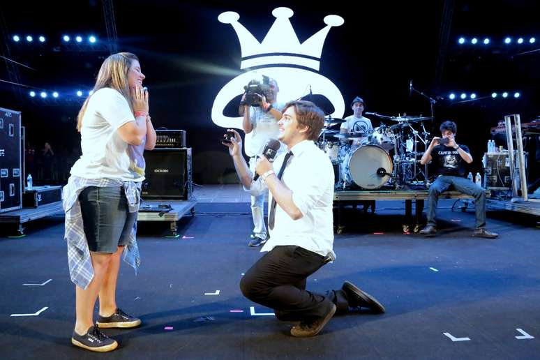 Lucas Salles subiu no palco do Capital Inicial para fazer o pedido