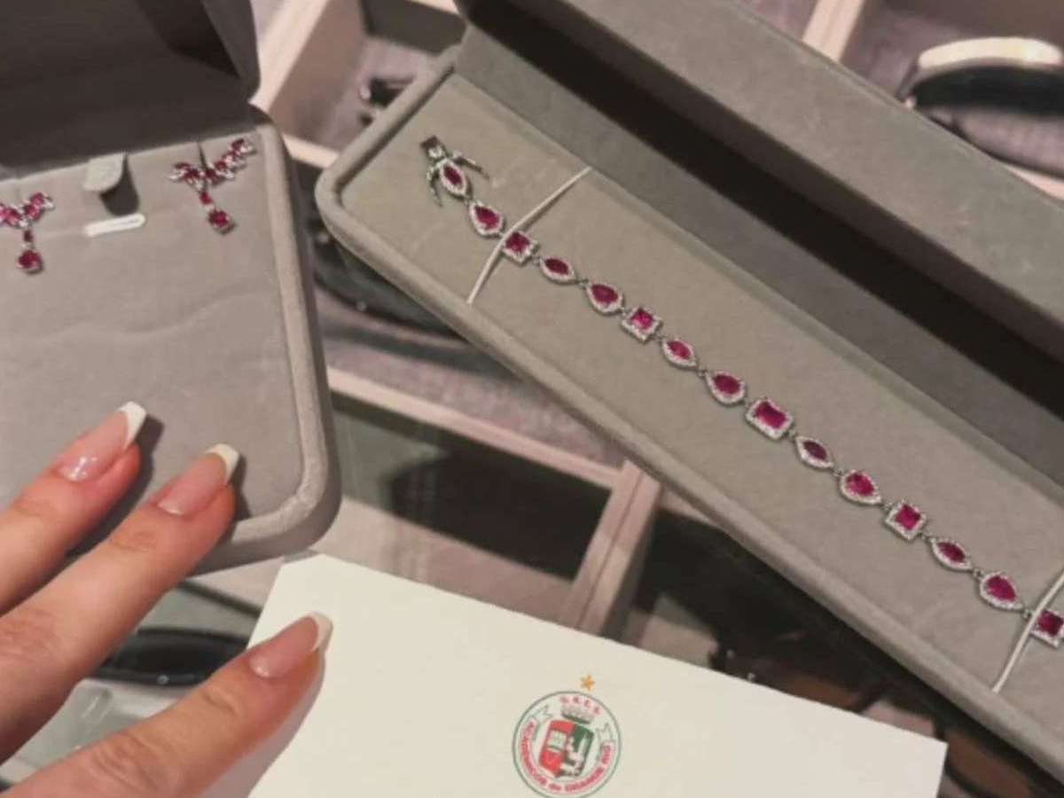 A apresentadora mostrou um colar acompanhado de brincos enviados por Jayder Soares, presidente de honra da Grande Rio. Como rainha de bateria da escola, cargo assumido após a saída de Paolla Oliveira, Virginia destacou o mimo ao escrever: "Presente de Natal do meu presidente", exibindo as joias que rapidamente geraram elogios.