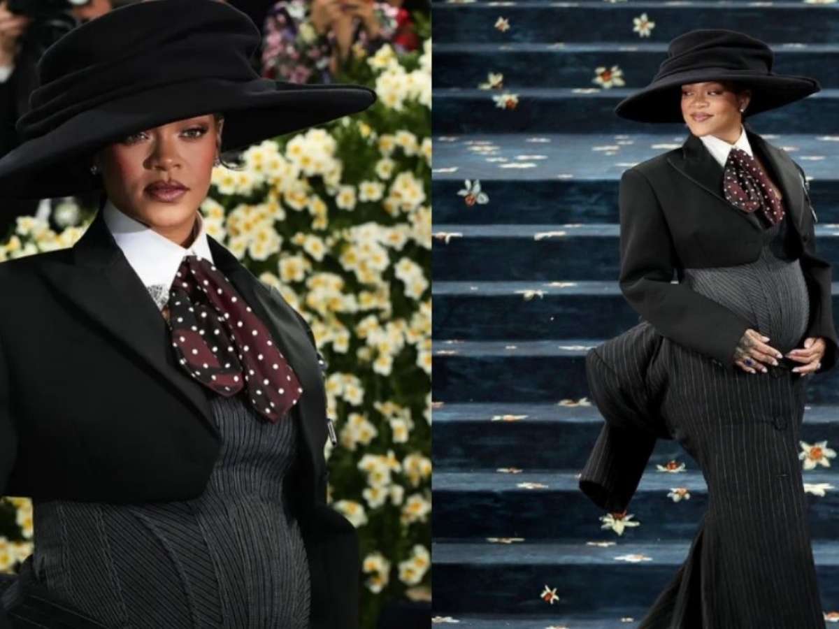 Rihanna cruzou o tapete vermelho do MET Gala com a barriguinha marcando