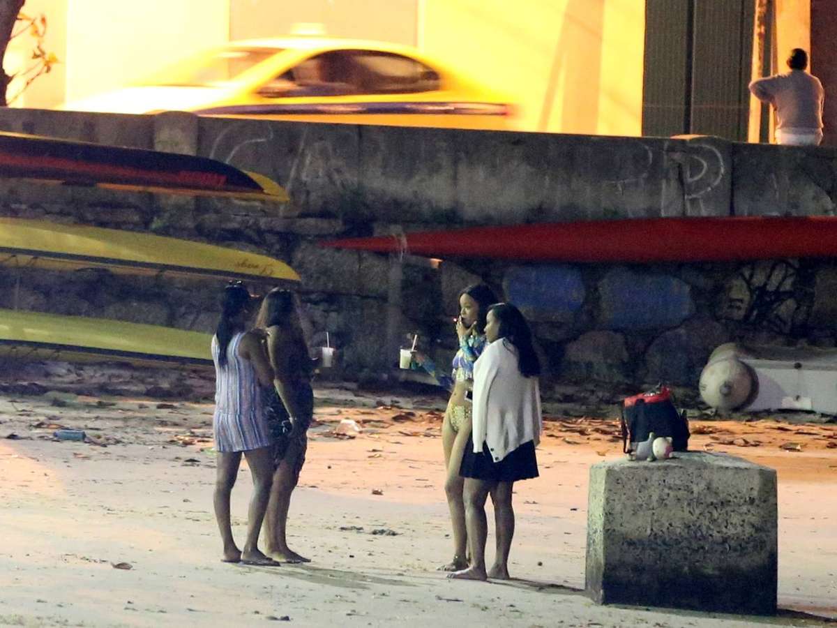 Rihanna bebe e fuma em passeio noturno por praia carioca