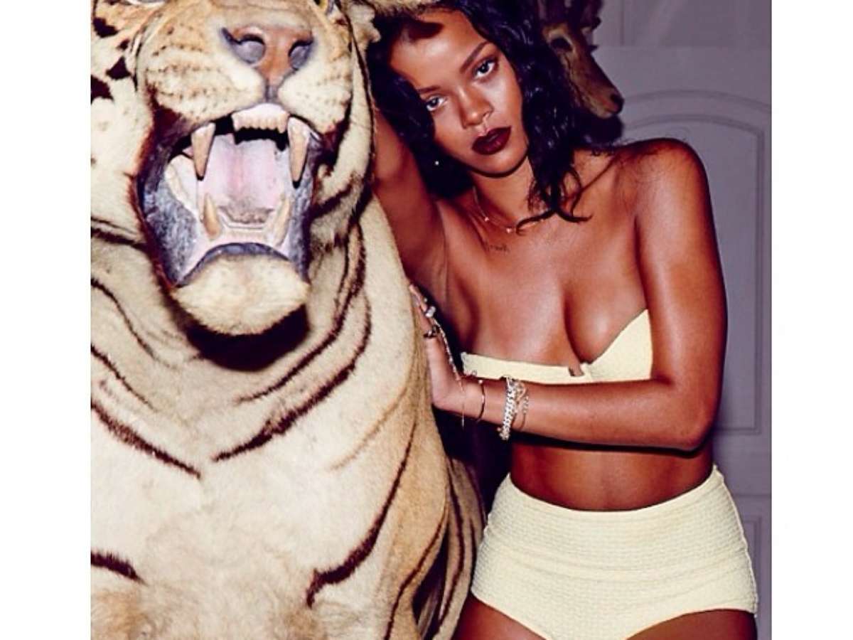 Rihanna posa sensual ao lado de tigre empalhado no Instagram