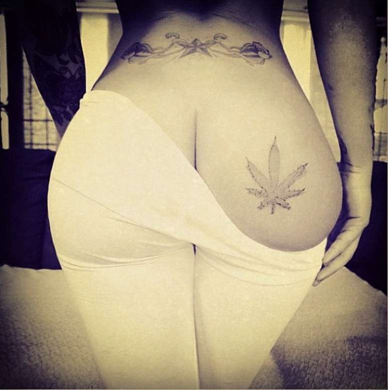 Rihanna postou uma foto bastante polêmica em seu Instagram nesta quarta-feira (19). A imagem mostra um bumbum com uma folha de maconha tatuada em uma das nádegas. No entanto, aparentemente a foto não é do bumbum de Rihanna, já que ela não teria essa tuatagem nem outras que aparecem na imagem.