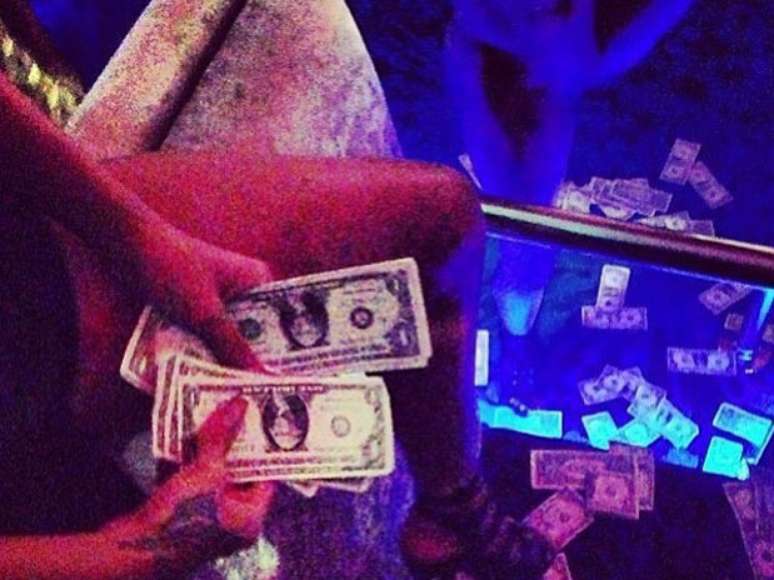 Rihanna posta foto jogando dinheiro no chão