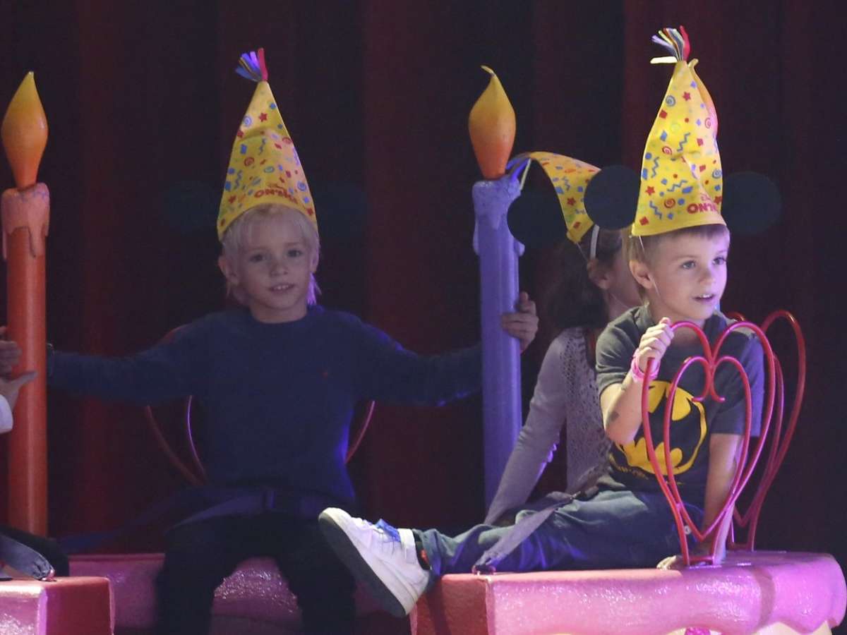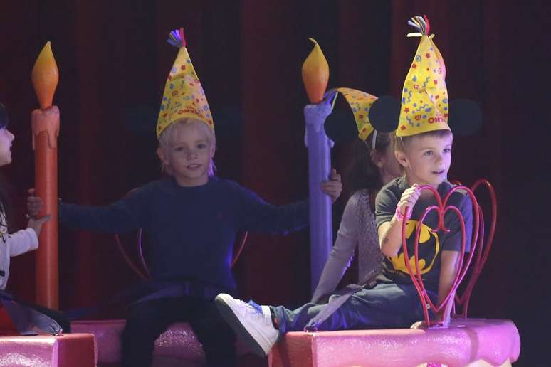 Os filhos gêmeos de Fernanda Lima, João e Francisco, e a filha de Claudia Abreu, Felipa, acompanharam o 'Disney On Ice' do palco montado no ginásio do Maracanãzinho, no Rio