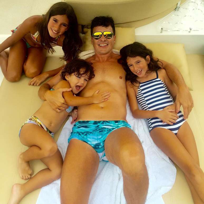 Nesta quinta-feira (21), Rodrigo Faro compartilhou uma foto onde aparece de sunga e ao lado das três filhas durante um passeio de barco. “Mais um dia no mar com meus amores...A mamãe @veraviel tirou a foto!!!”, escreveu ele no Instagram.