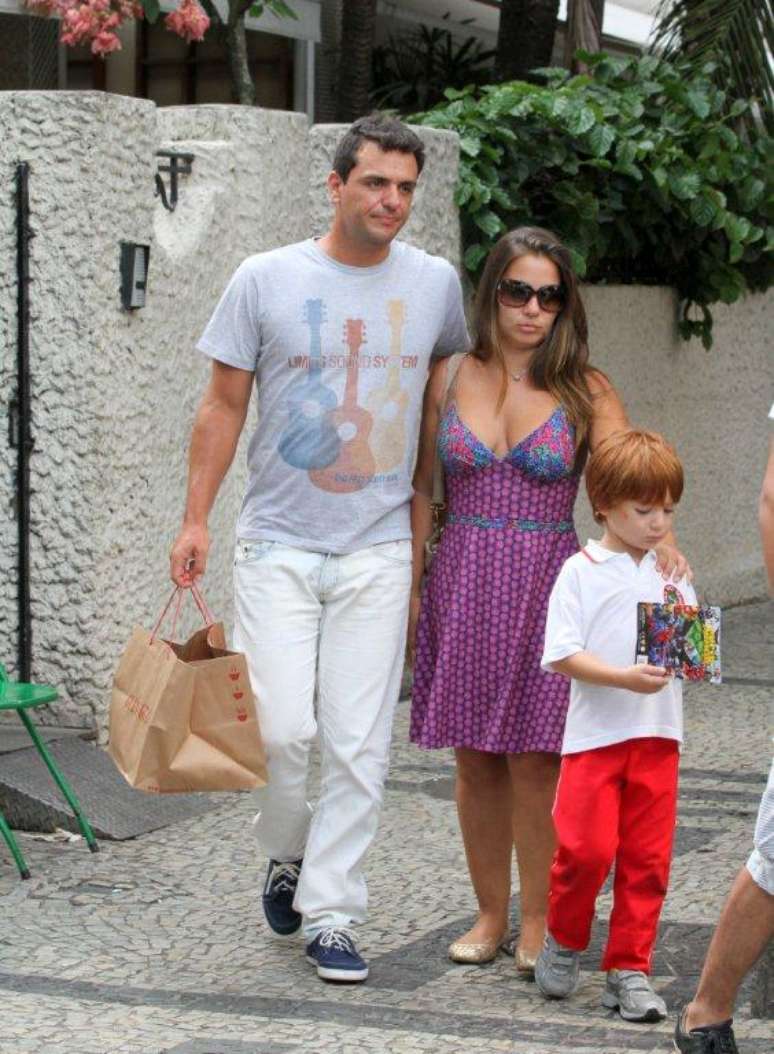 Rodrigo Lombardi aproveitou esta segunda-feira (4) em clima família. O ator foi clicado ao sair de um restaurante no bairro de Ipanema, no Rio de Janeiro, ao lado da mulher, Betty Baumgarten, e do filho, Rafael