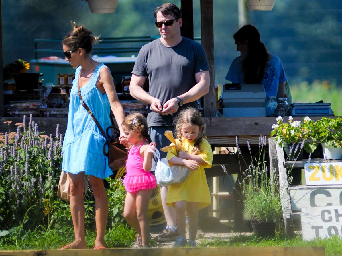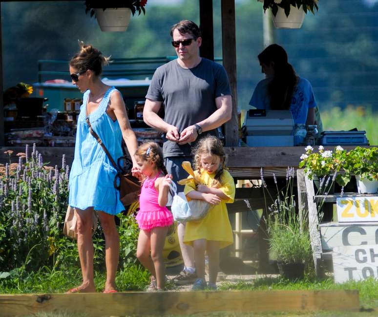 O casal de atores Sarah Jessica Parker e Matthew Broderick aproveitou o sol em Nova York, nos Estados Unidos, para passear com as filhas gêmeas, na quinta-feira (18). Com um visual despojado, o casal comprou frutas em um estabelecimento comercial