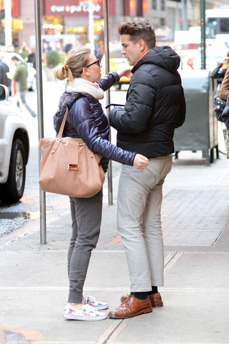 Scarlett Johansson protagonizou cenas de romance na quarta-feira (5), em Nova York