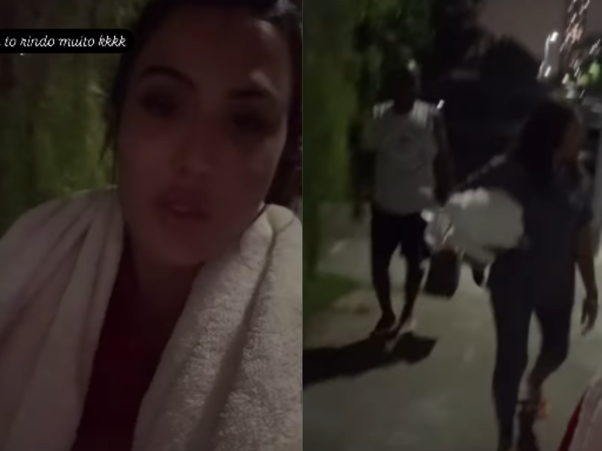 "Em casa não tem internet, não tem água, não temos nada", disse ela, entre risos. Mesmo com o imprevisto, ela encarou tudo com leveza. "O povo na 'acd' olhando. Vim de roupão e nem tô com vergonha", contou, divertindo-se com a situação.
