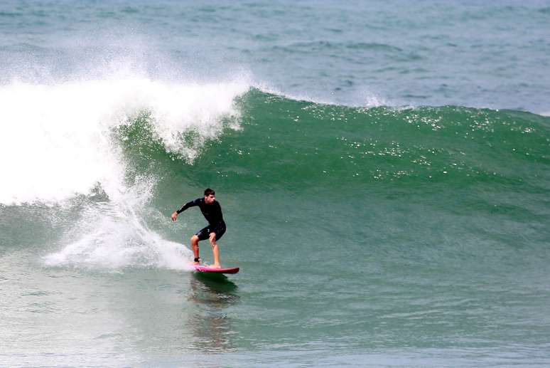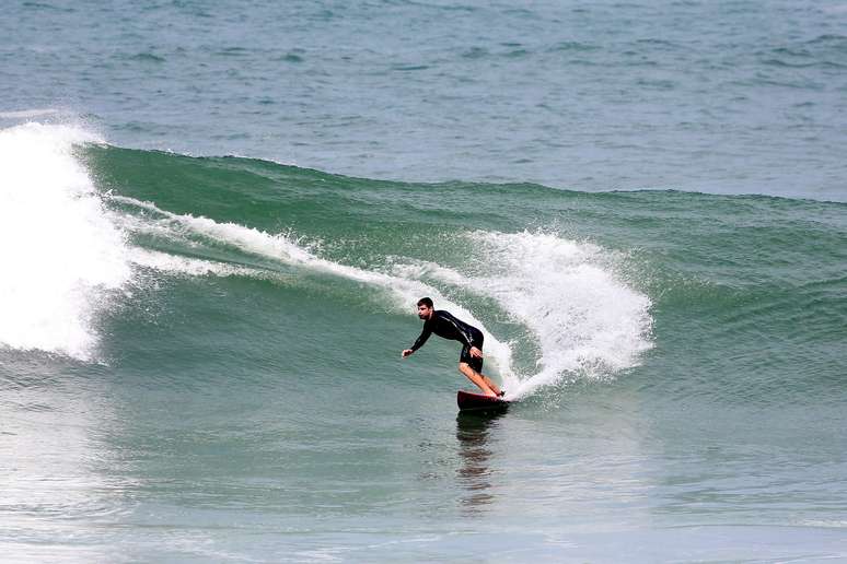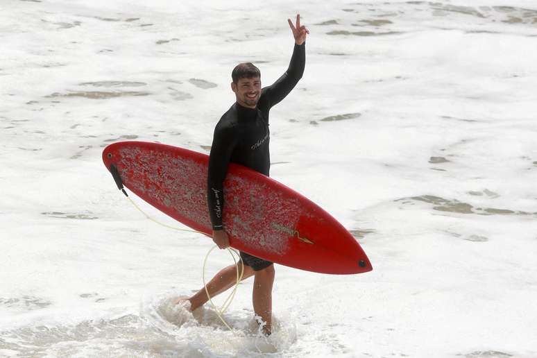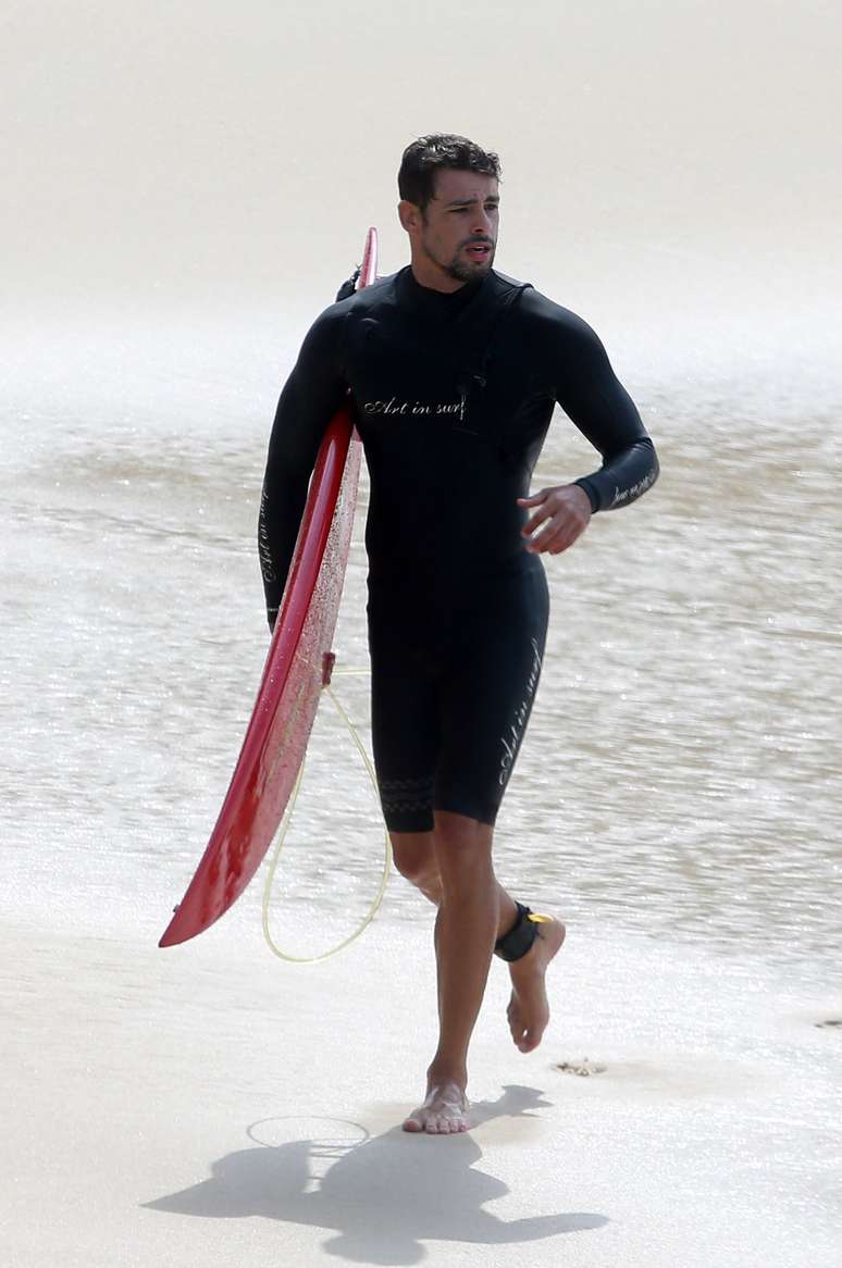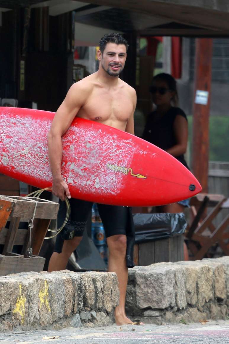 Um pouco antes, Cauã praticou um de seus esportes favoritos, o surf, e mostrou que manda muito bem quando o assunto é pegar onda. Simpatia também não faltou ao ator, que acenou para os fotógrafos quando os viu registrando o momento de lazer.