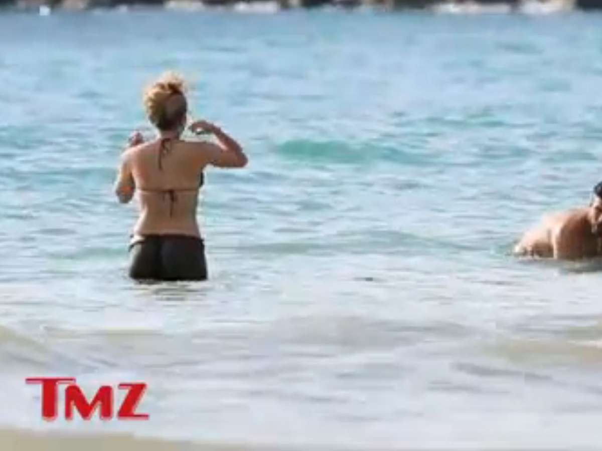 Shakira foi fotografada com uma saia por cima da parte de baixo de seu biquíni durante um banho de mar na companhia do marido, o jogador de futebol Gerard Piqué, no Havaí. As informações são do site TMZ.