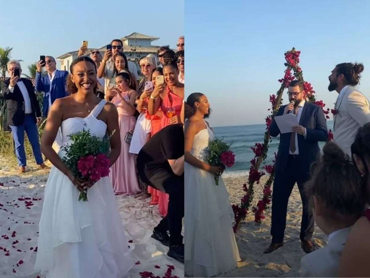 Sheron Menezzes e Saulo Camelo se casam em praia do Rio de Janeiro