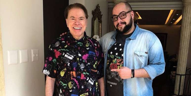 Silvio Santos posou ao lado do seu neto Tiago Abravanel vestindo um pijama colorido na noite de segunda-feira, 5.
