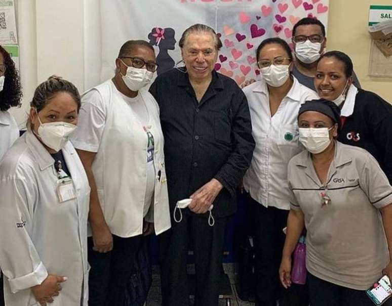 A foto de Silvio com as profissionais de saúde foi compartilhada nas redes sociais pela assessora de imprensa da emissora, Maisa Alves.