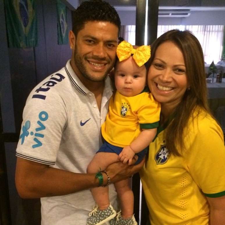 Sua filha caçula, Maria Esther, fez sucesso com os atletas. Na foto, ela posa com Hulk