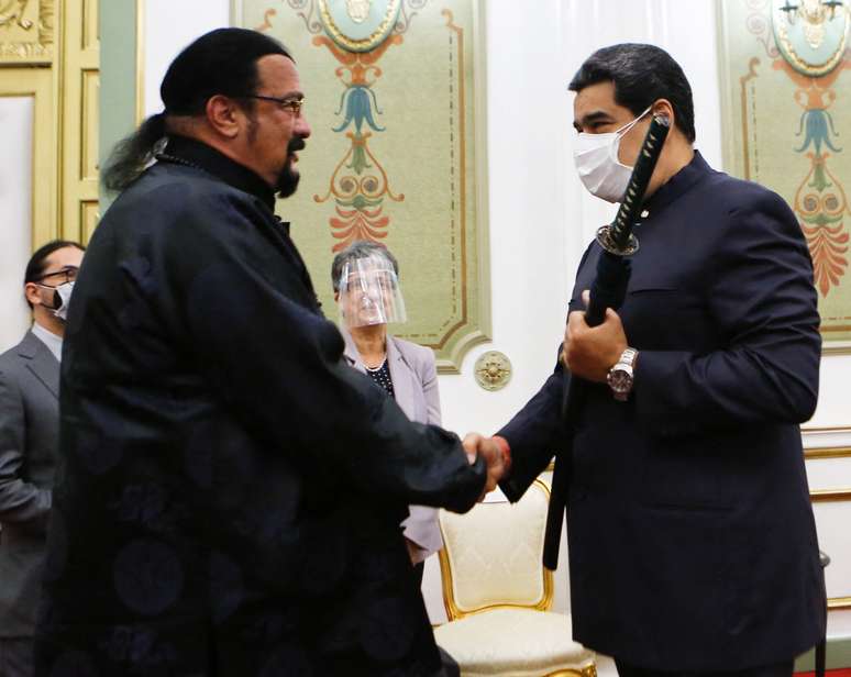 Steven Seagal presenteia Nicolás Maduro com espada samurai "da Rússia"