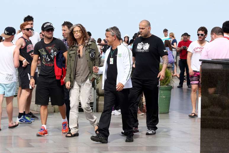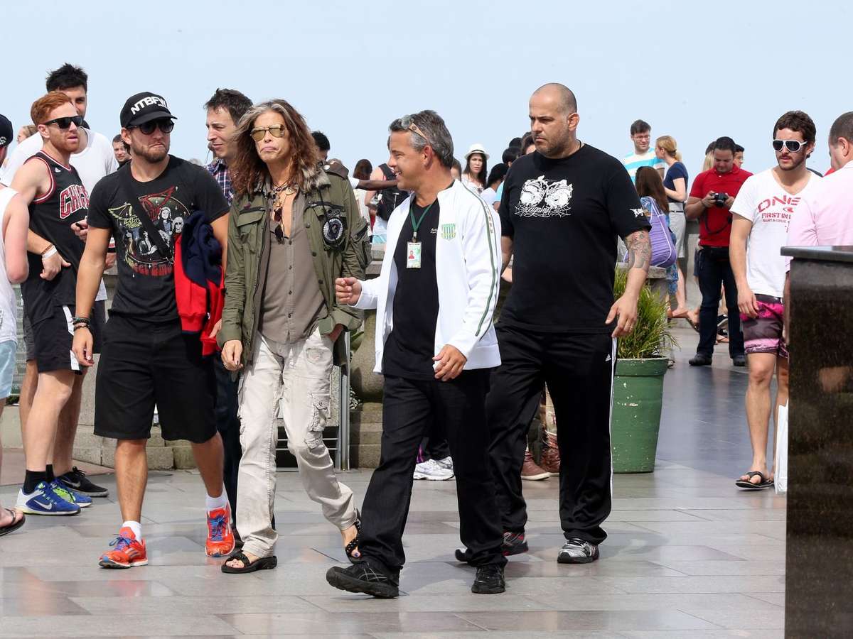 Steven Tyler aproveitou o tempo livre no Rio de Janeiro para visitar o Cristo Redentor, nesta sexta-feira (18), na companhia da família. O músico observou a estátua e a vista do local, e depois ainda conversou com algumas pessoas que o abordaram