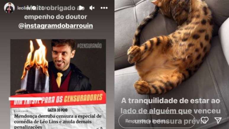 Nas redes sociais, o humorista comemorou a sentença com postagens em seus stories do Instagram. Nas imagens, Leo agradece aos advogados pelo empenho e, com um vídeo do seu gato, escreve a seguinte frase: "A tranquilidade de estar ao lado de alguém que venceu uma censura prévia".
