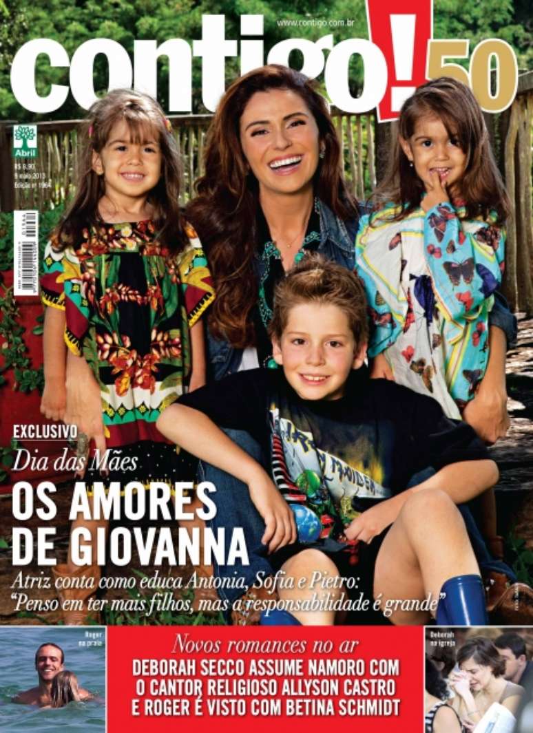 Giovanna Antonelli, que tem feito sucesso na pele da personagem Helô em Salve Jorge, posou com os filhos, Pietro, 8 anos, fruto do relacionamento com Murilo Benício, e as gêmeas Antonia e Sofia, de 2 anos, do relacionamento com o diretor Leonardo Nogueira, para a revista Contigo! desta semana.