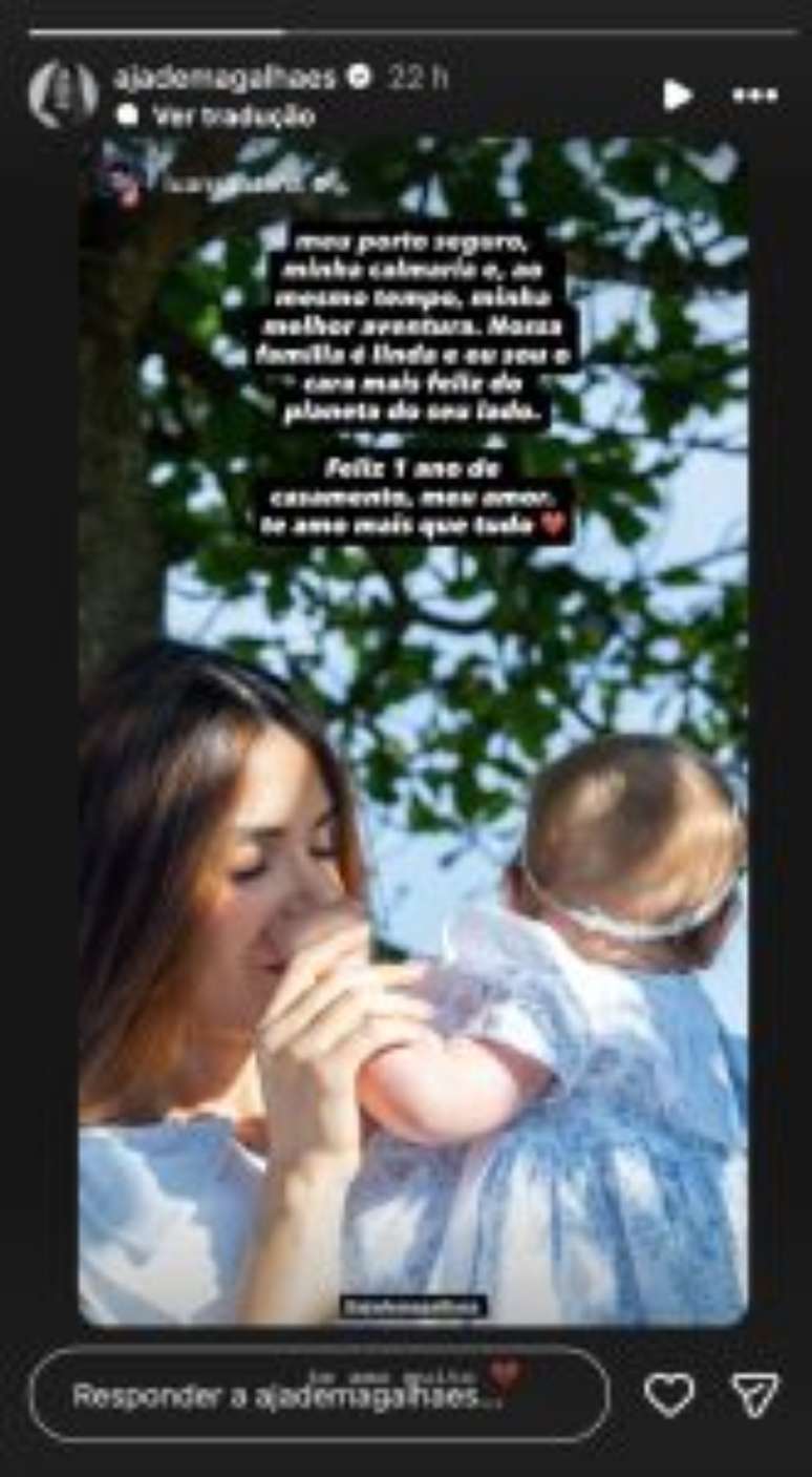 "Meu porto seguro, minha calmaria e, ao mesmo tempo, minha melhor aventura. Nossa família é linda e eu sou o cara mais feliz do planeta ao seu lado. Feliz 1 ano de casamento, meu amor. Te amo mais que tudo", disse o cantor.