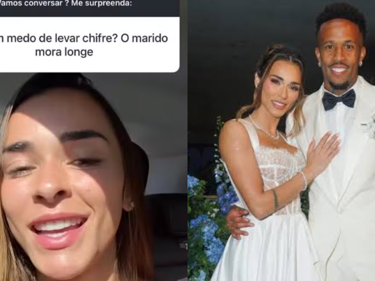 Tainá Castro, que mora no Brasil, rebate o medo de traição do marido Éder Militão, zagueiro do Real Madrid na Espanha, e diz que a distância é detalhe