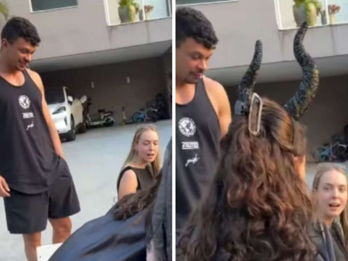 Tata Estaniecki, de 31 anos, e Júlio Cocielo, de 32, foram vistos juntos após anunciarem o término do casamento. No vídeo, a influenciadora e o youtuber aparecem participando de uma festa de Halloween no condomínio onde ela mora. As imagens foram gravadas por uma mãe que, assim como outras, visitava o local para acompanhar as crianças na tradicional coleta de doces pelo bairro.
