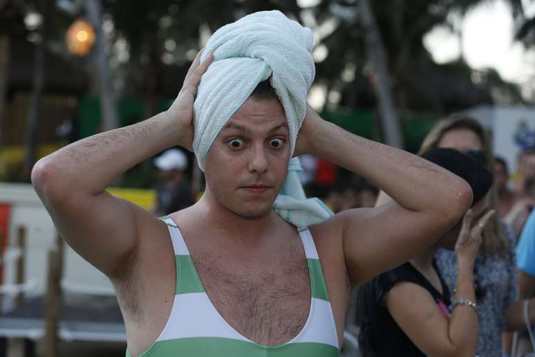 Famosos se divertiram na inauguração do brinquedo Arrepius, no Beach Park de Fortaleza (CE), na ensolarada tarde de sábado (27); na foto, o humorista Fábio Porchat