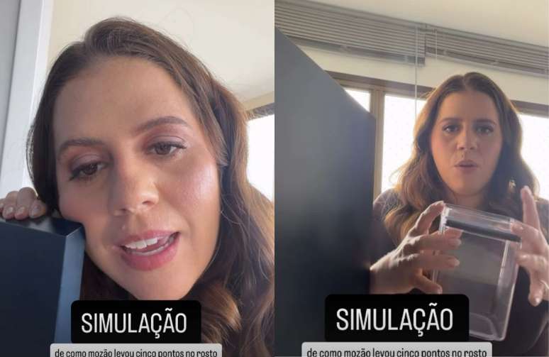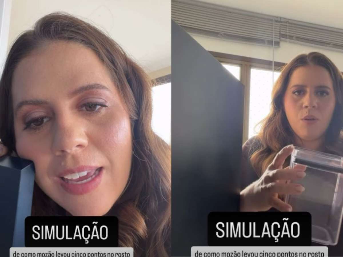 “O Bruno bateu a bochecha exatamente assim e abriu o rosto. Tomou cinco pontos. 7h da manhã. Fui eu e ele correndo pro hospital. Cinco pontos na cara naquele rostinho lindo”, explicou.