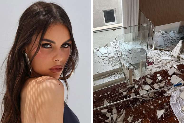 Mãe de Helena, de 1 ano, uma das herdeiras de Neymar, ela mostrou, em postagens, gesso quebrado, cacos de vidro espalhados pelo chão e a grande bagunça causada pelo desabamento. “Uma laje cheia de água, um teto desabado e infiltração pela casa toda”, lamentou, por meio dos stories do Instagram.