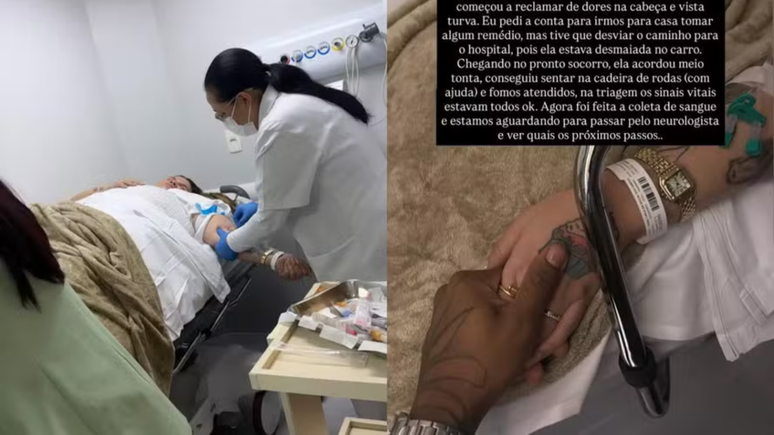 Ainda segundo Israel, a situação exigiu ação rápida. "Pedi a conta para irmos para casa tomar um remédio, mas tive que desviar o caminho para o hospital, pois ela estava desmaiada no carro", relatou. Já no pronto-socorro, Thais recobrou a consciência e apresentou sinais vitais estáveis. "Ela acordou meio tonta, conseguiu sentar na cadeira de rodas com ajuda e foi atendida", completou o marido.