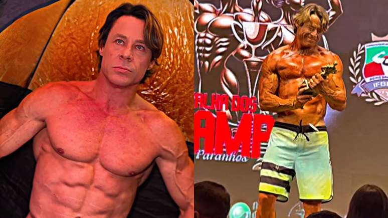 Theo Becker, de 48 anos, fez sua estreia no fisiculturismo no último fim de semana, durante uma competição da IFBB-RS (Federação Internacional de Fisiculturismo e Fitness), em Pelotas (RS). O ator participou da categoria Men's Physique, que valoriza simetria, estética e físico atlético, e conquistou um troféu, além de um prêmio de R$ 100 em vale-compras em uma farmácia de manipulação.