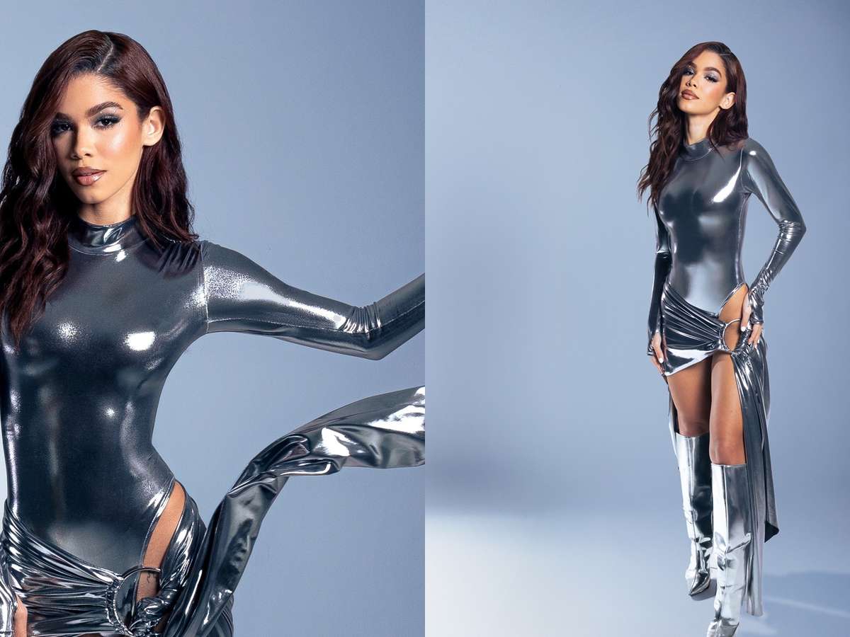 Tília surge deslumbrante em look futurista para festa de 22 anos em Sâo Paulo