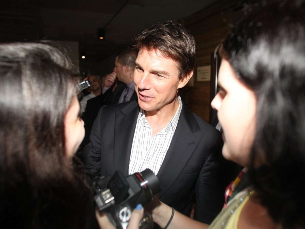 Tom Cruise, que está no Brasil para divulgar seu novo filme, foi simpático e atendeu a diversos fãs na saída de uma churrascaria no Rio de Janeiro, na noite da última quarta-feira (27)
