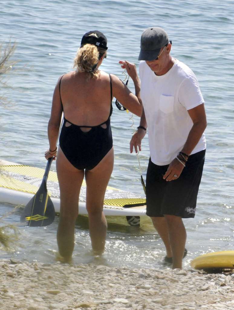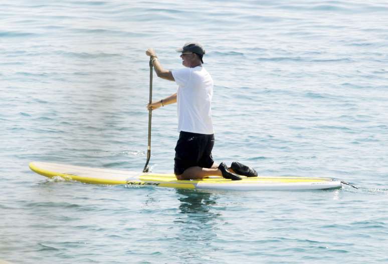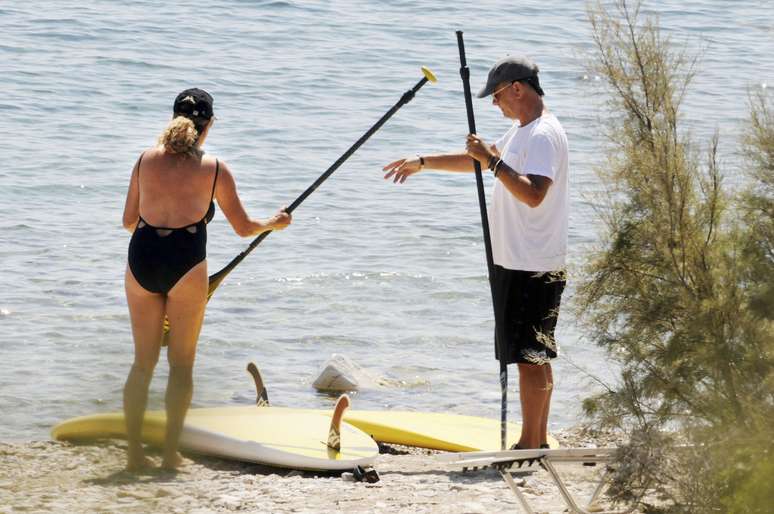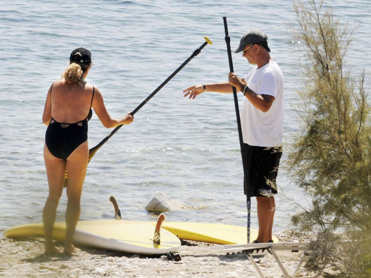 O casal, que vive em Hollywood, possui uma casa de verão no local. Hanks e Wilson foram clicados se divertindo enquanto praticavam stand up paddle. O ator, no entanto, não conseguiu ficar em pé na prancha, tendo que improvisar um passeio de joelhos.