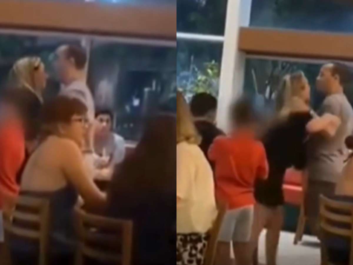 Um homem levou a amante para almoçar e foi flagrado pela esposa e filho; após confirmar traição, mulher partiu para cima da rival