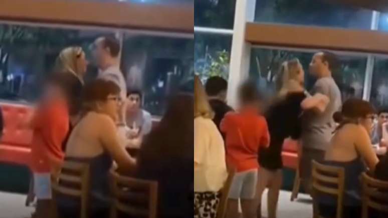 Tomada pela raiva, ela conseguiu passar e partiu para cima da amante, que caiu no chão. Foi quando diversos clientes do restaurante entraram no meio e tentaram impedir a agressão. Enquanto isso, uma criança que chegou ao local junto com a esposa, apontada como filho do casal, acompanhou toda a situação.
