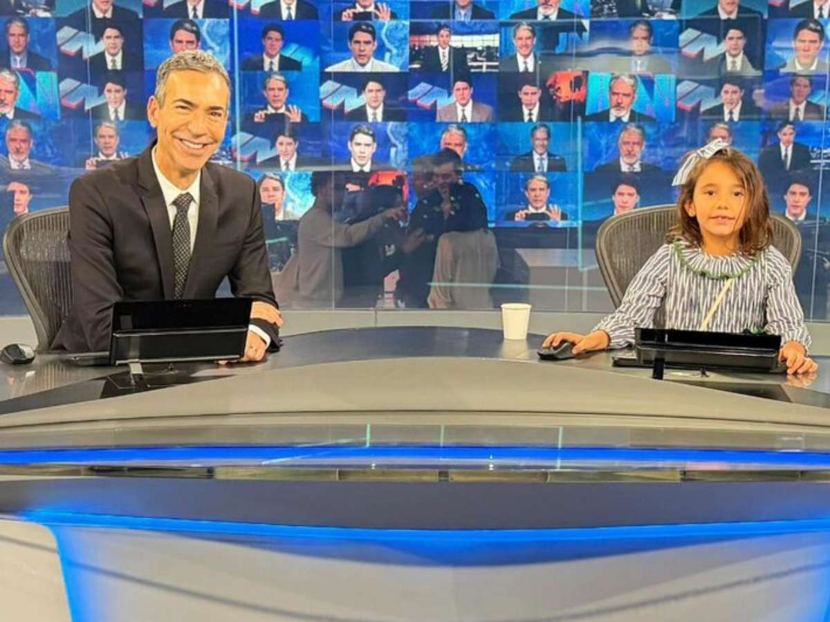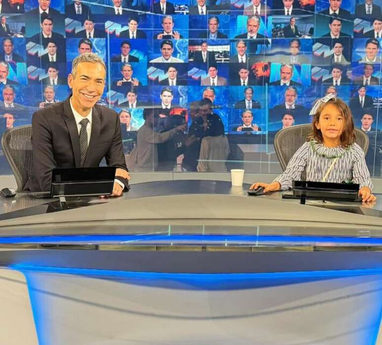 César Tralli compartilhou nesse domingo, 2, os bastidores de uma foto que postou com sua filha Manuella, de seis anos, na bancada do Jornal Nacional. Ele, que é o novo âncora do programa jornalístico após a saída de William Bonner, relatou o diálogo com a menina, que se sentou na cadeira de Renata Vasconcellos: "Papai, posso sentar na cadeira da Tia Renata?"