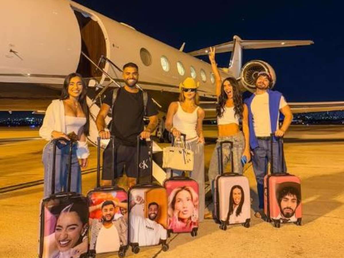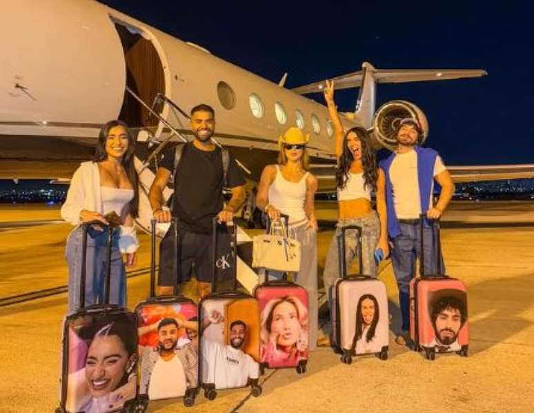 Influenciadora e amigos levaram malas personalizadas com os rostos de cada um