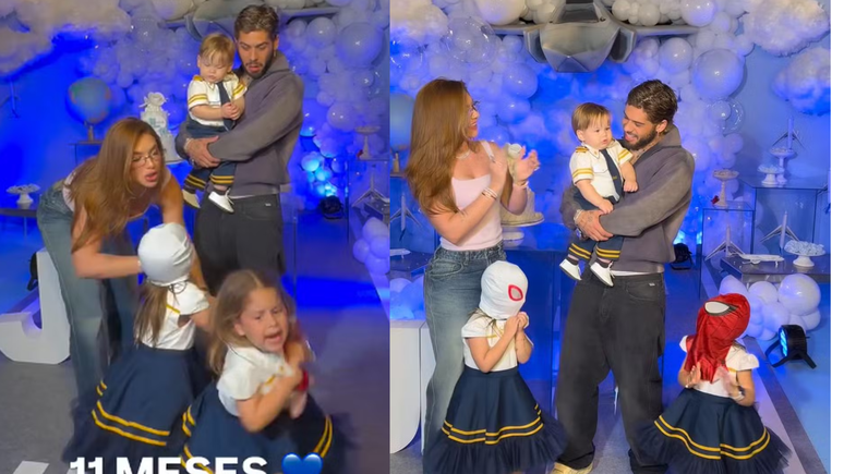 No entanto, a tranquilidade durou pouco. Durante o coro, Maria Alice tentou pegar a máscara de Homem-Aranha que a irmã mais nova, Maria Flor, de 2 anos, usava. Irritada, a pequena reagiu: "Para, é minha". Diante da disputa, Virginia separou as duas, enquanto Zé Felipe não conteve o riso com a situação. Em seguida, Maria Flor buscou conforto com a babá, que a ajudou a recolocar a máscara e acalmar os ânimos. O vídeo do momento se espalhou rapidamente, gerando comentários bem-humorados entre os seguidores do casal.