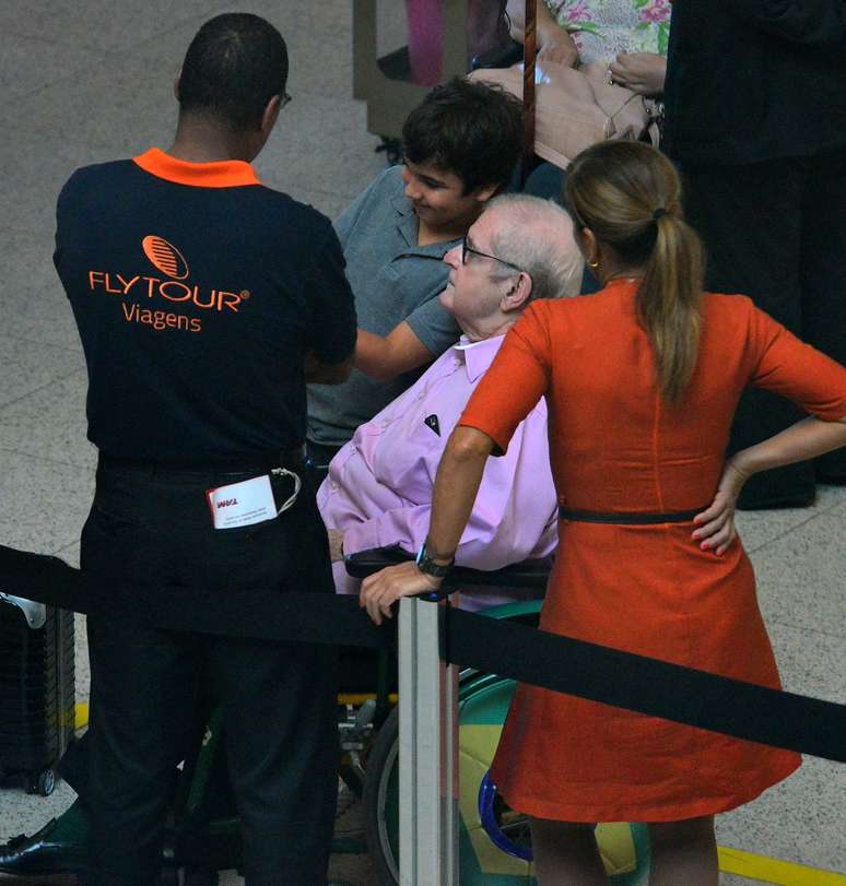 Na tarde desta sexta-feira (24), Jô Soares foi clicado no aeroporto, antes de embarcar, usando uma cadeira de rodas.