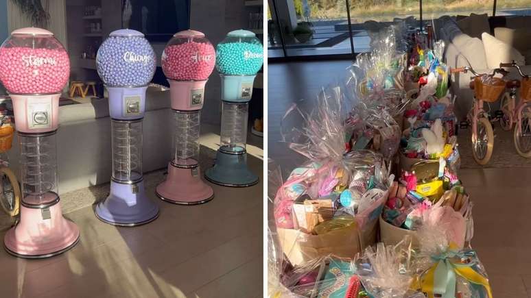 A matriarca da família não mediu esforçou para entregar uma comemoração belíssima ao clã, com direito a grande decoração, ovos enormes e personalizados, diversos presentes, bicicletinhas infantis e até máquinas de chiclete para os netos.